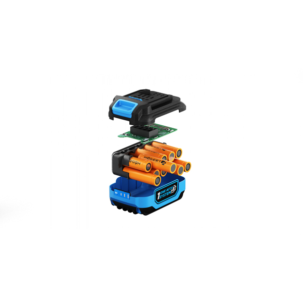 Característica Tecnologia de íons de lítio. Voltagem – 18 V. Capacidade – 2,0 Ah. Peso – 0,42 kg. Proteção contra superaquecimento, sobrecarga e curto-circuito. Nível de carga. Temperatura externa de operação – de – 18 ℃. Código EAN – 5902801489761.