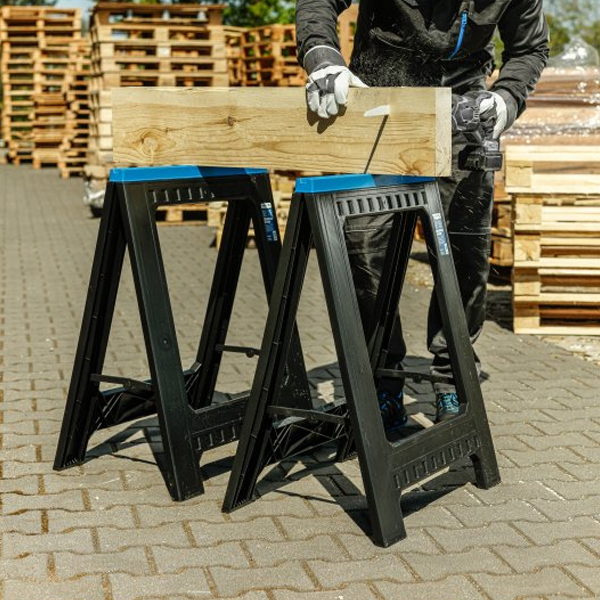 Característica altura 77 cm; pés antiderrapantes; equipado com dois suportes; Carregue até 350 kg (no caso de utilização de dois cavaletes).