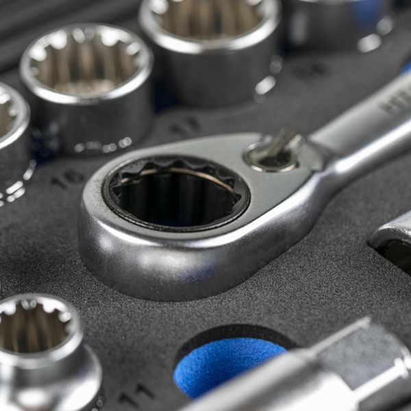 Preço sob consulta. Característica soquetes e acessórios feitos de aço de liga de cromo-vanádio de alta qualidade resistente à deformação forjado a quente mecanismo de catraca com 60 dentes 2 adaptadores para montagem de catraca de 1/4” e 3/8” embalado em uma caixa com fechaduras e dobradiças de metal interior da caixa em material flexível…