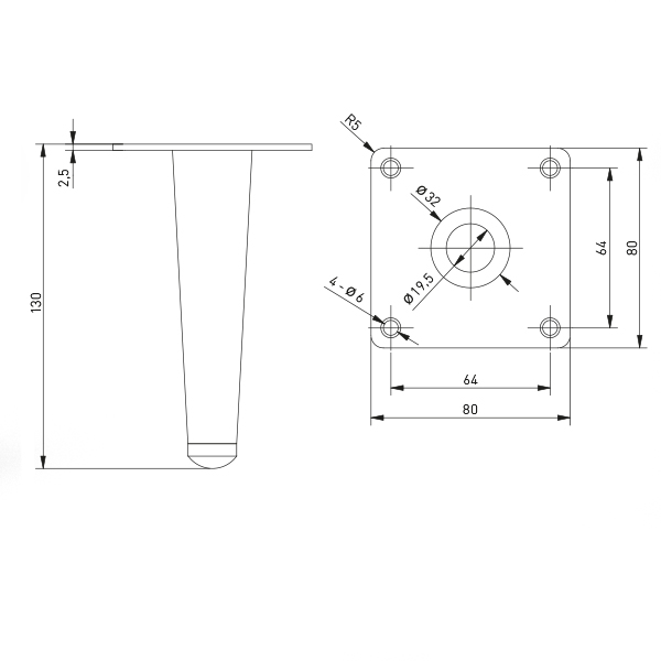 Pé de móvel “SPIRE” de 13cms. Disponível em preto mate e dourado.