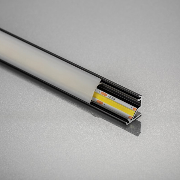 O perfil de canto é usado nos cantos dos móveis, geralmente sob armários de parede na cozinha e sob prateleiras no guarda-roupa.