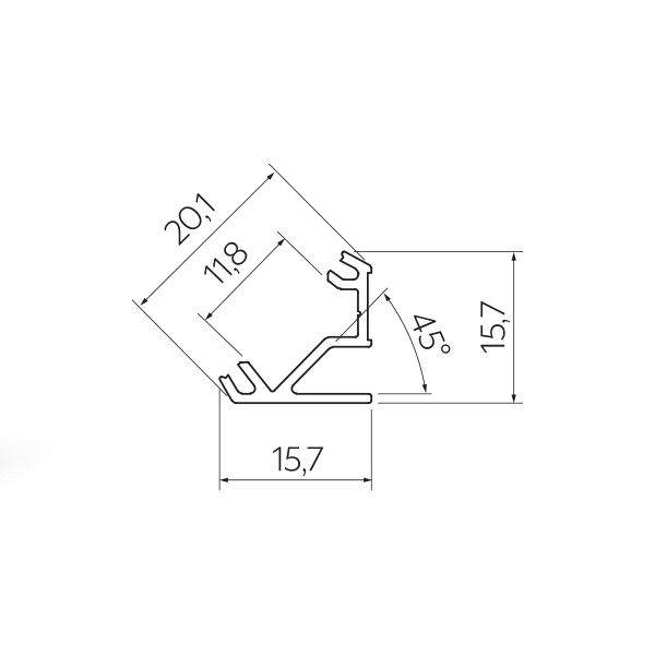 Para perfis angulares sobrepostos, são utilizados suportes de montagem especiais, com pequenas placas curvas para dentro que fixam o perfil no lugar. Recomenda-se que a distância entre os suportes não seja superior a 1 metro. Os suportes de montagem são fixados à superfície selecionada com um parafuso de cabeça escareada de Ø 3. É fundamental que o diâmetro da cabeça do parafuso não exceda 6 mm.